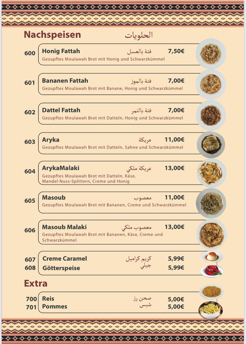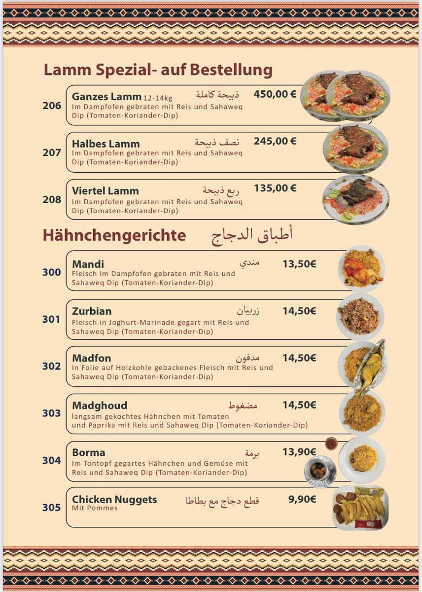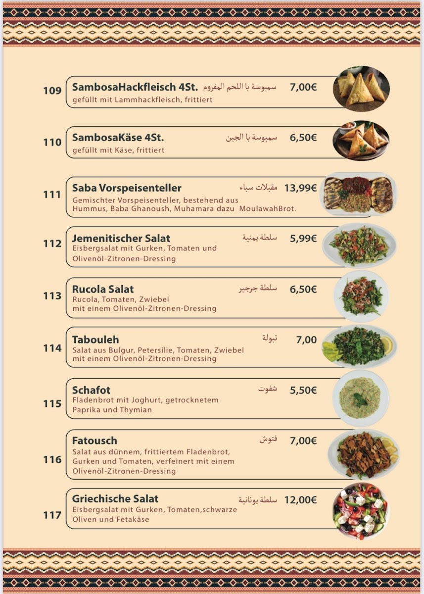 Saba Yemen in Fürth is a true gem for anyone craving authentic Yemeni cuisine. Located on Königstraße, this restaurant offers a diverse menu that celebrates the rich flavors of Yemen’s culinary heritage. The menu begins with delicious Vorspeise (appetizers), followed by traditional breads paired with tender lamb dishes. Whether you choose succulent lamb or flavorful chicken plates, each entrée bursts with aromatic spices. Seafood lovers can enjoy the expertly prepared fish dishes, while the hearty Topfgerichte (stewed pots) provide a comforting, slow-cooked experience. Saba Yemen also offers refreshing fresh juices and a selection of beverages to complement your meal. The desserts are a delightful finish, rounding out the cultural journey. Guests consistently praise the attentive service and warm atmosphere, enhancing the dining experience. For an unforgettable taste of Yemen’s culinary tradition, Saba Yemen stands out as a welcoming and flavorful destination.